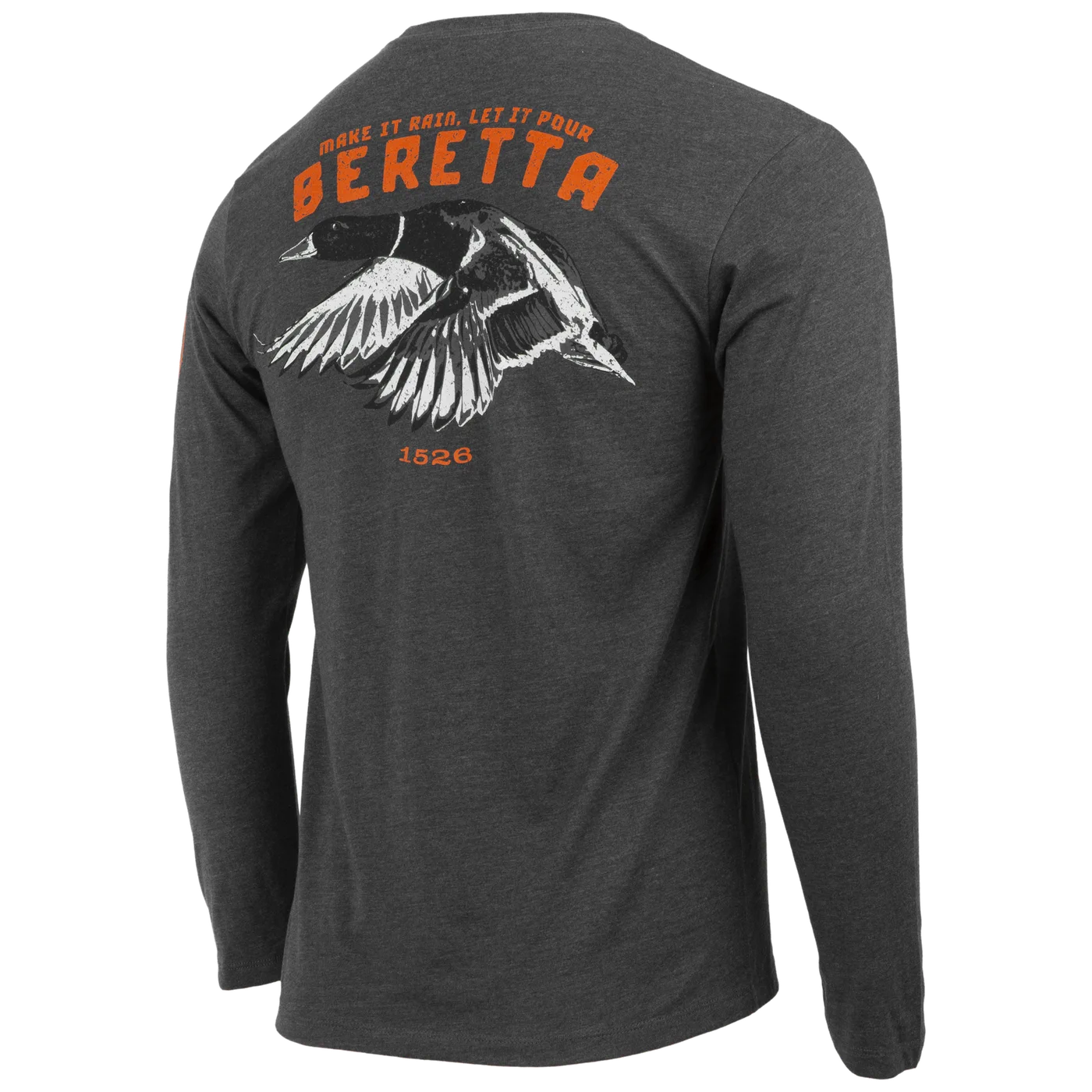 - Logo detail on front, back, and sleeve